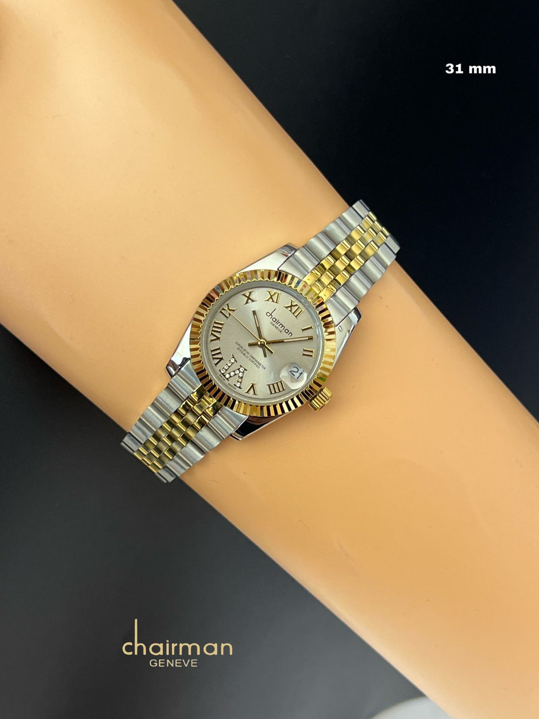 Diamond Chairman Geneve Dated White Marble Dial Silver And Gold Dial Ladies Watch