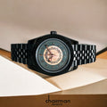 Chairman Geneve Arabic Green And Beige Dial Black Chain Gents Watch