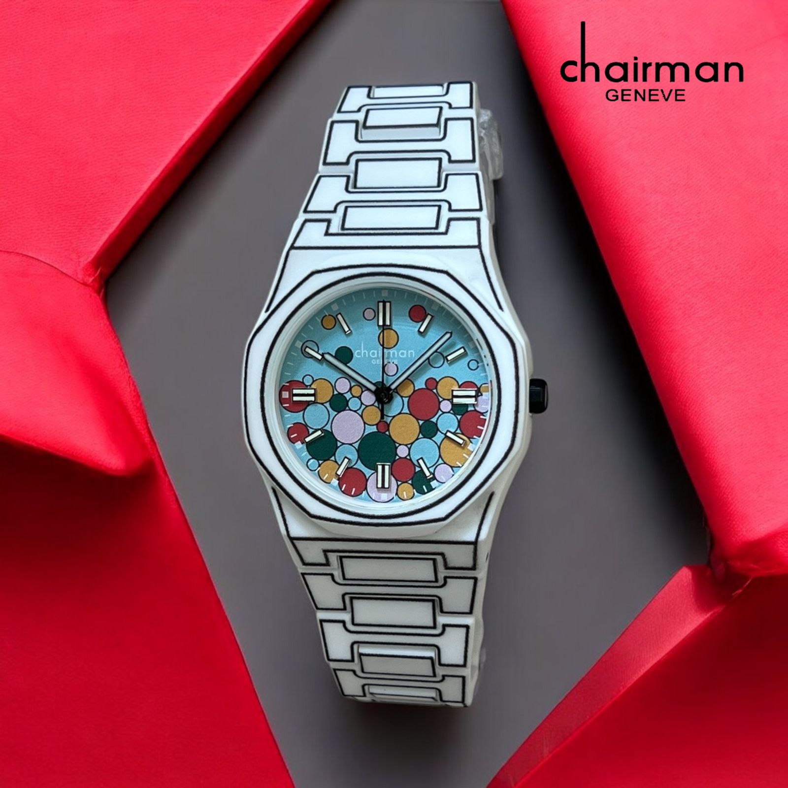 Introducing the Chairman Geneve Sky Blue Dial White Strap Gents Watch, a stylish and sophisticated timepiece. With its sleek sky blue dial and classic white strap, this watch is the perfect accessory for any occasion. Stay on time and on trend with Chairman Geneve. FREE DELIVERY CASH ON DELIVERY ALL OVER UAE