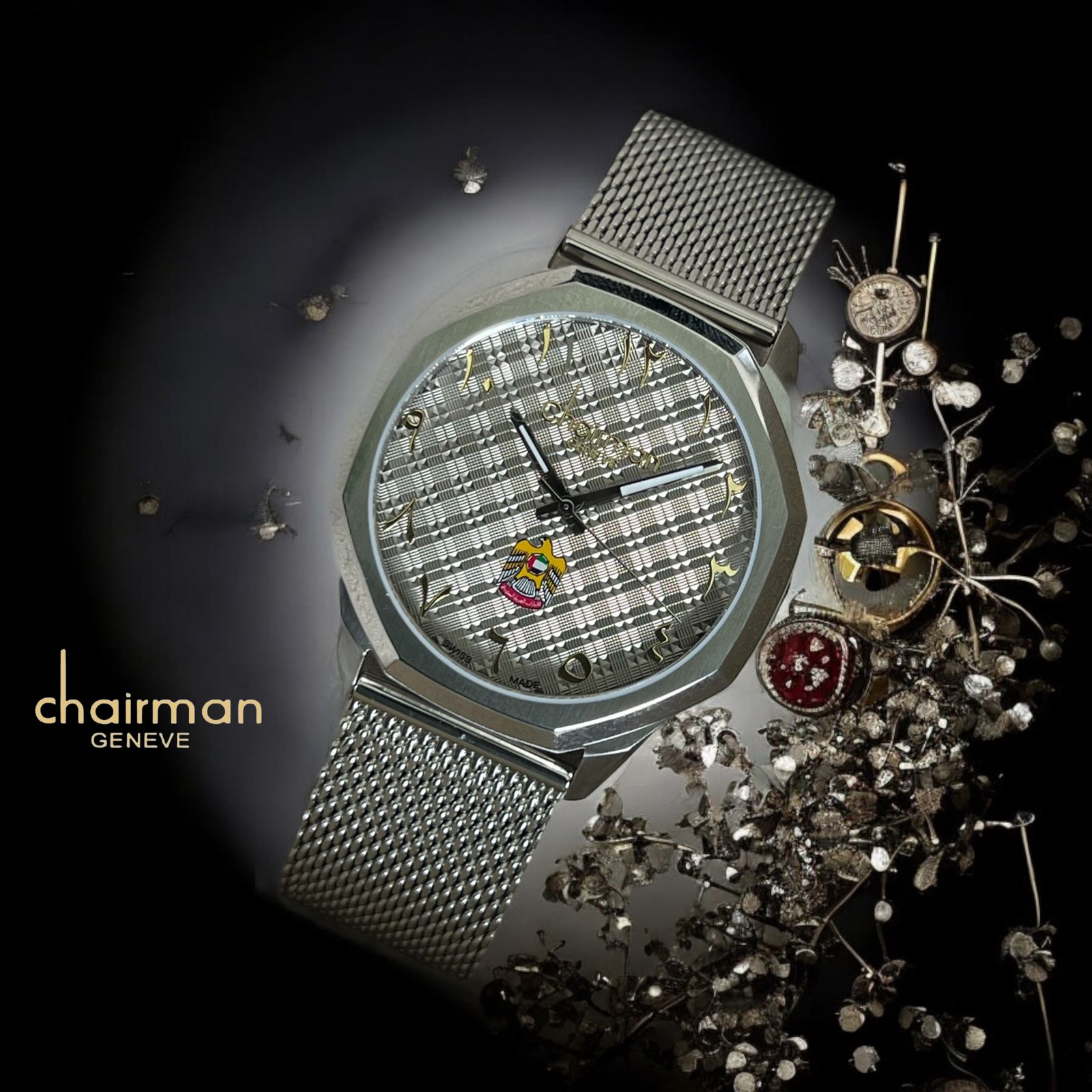 Discover the elegance and sophistication of the Chairman Geneve UAE Emblem watch. Featuring a sleek silver chain and a striking grey Arabic dial with the UAE emblem, this timepiece exudes luxury and style. Perfect for any distinguished gentleman looking to make a statement. FREE DELIVERY CASH ON DELIVERY ALL OVER UAE