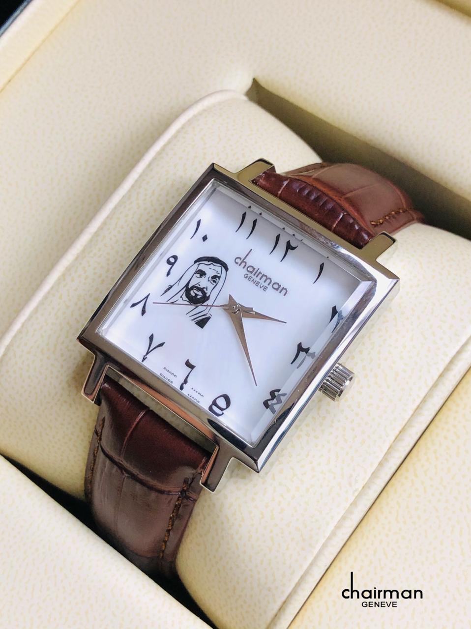 Chairman White Arabic Dial Silver Frame And Brown Strap Men's Watch