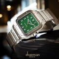 Special Edition Chairman Geneve Dated Arabic Green Dial Silver Chain Gents Watch
