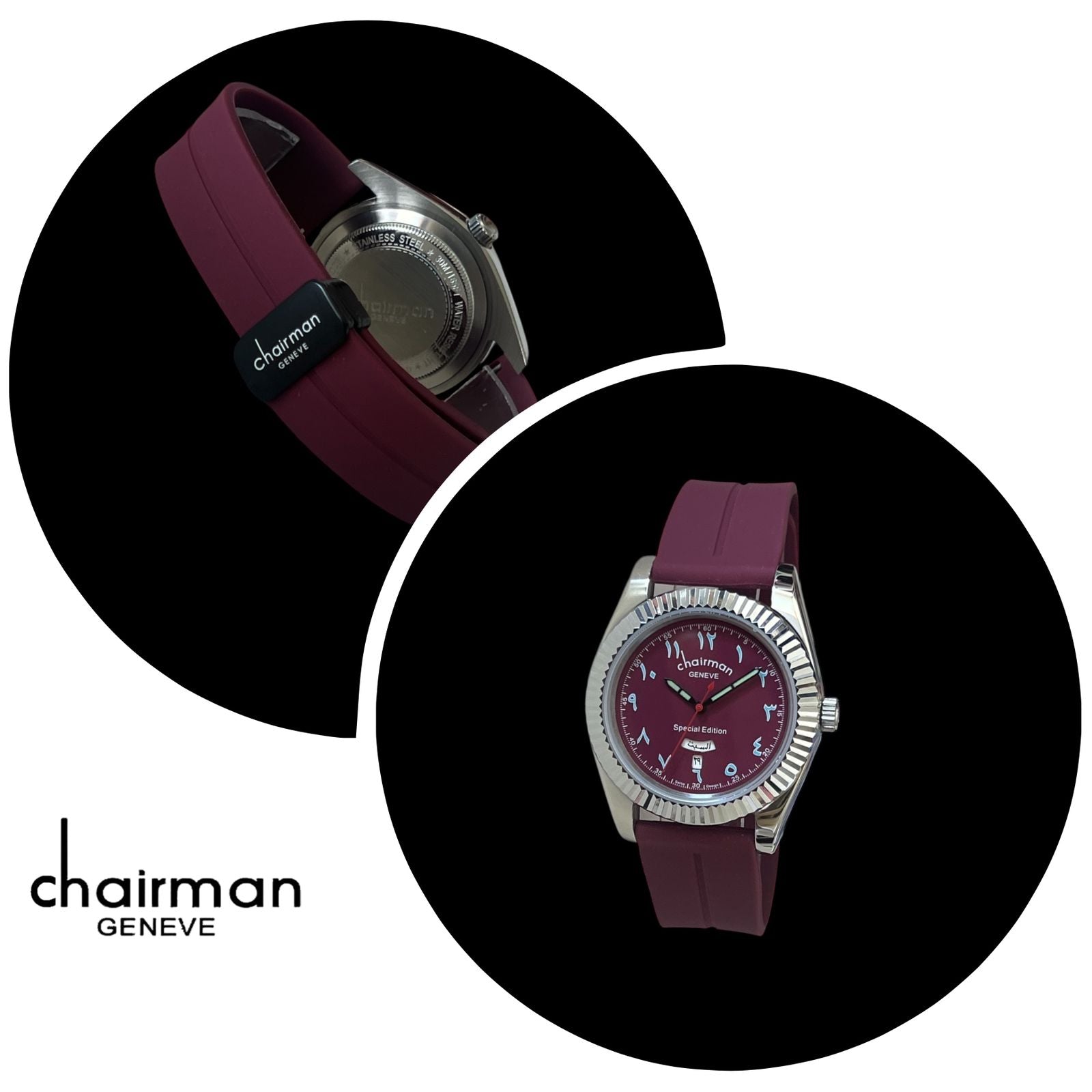 Introducing the exclusive Special Edition Chairman Geneve watch, featuring a sleek maroon dial and matching strap. Stay punctual with the day and date feature, while exuding timeless style. The perfect choice for any modern gentleman. FREE DELIVERY CASH ON DELIVERY ALL OVER UAE