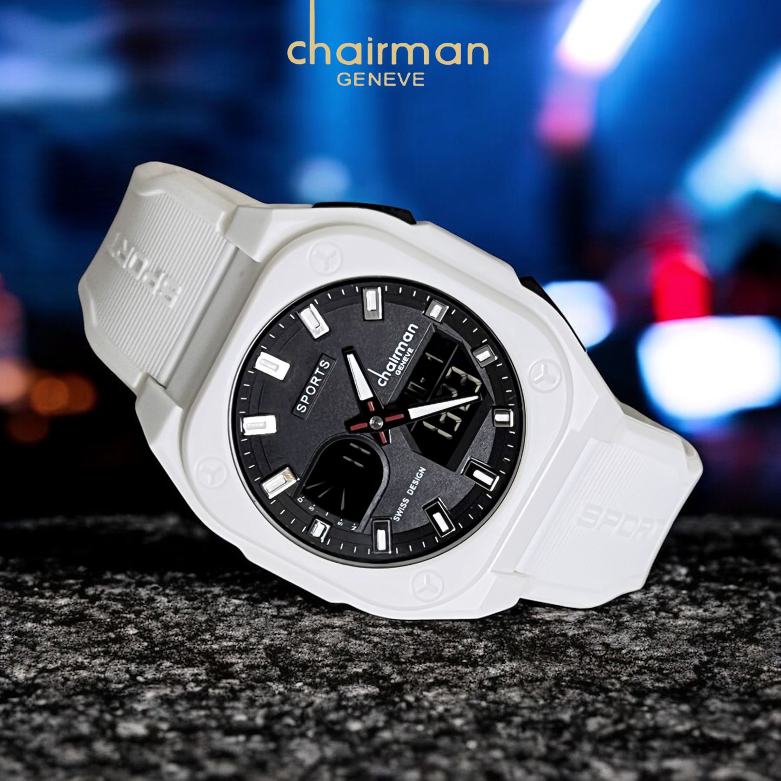 Elevate your style with the Sports Chairman Geneve Black Dial White Gents Watch. Featuring a sleek black dial contrasted by a crisp white strap, this timepiece offers a bold yet refined look ideal for any occasion. Its precise movement ensures reliable timekeeping, while the durable design provides lasting wear. Perfect for the modern gentleman who values both fashion and function.