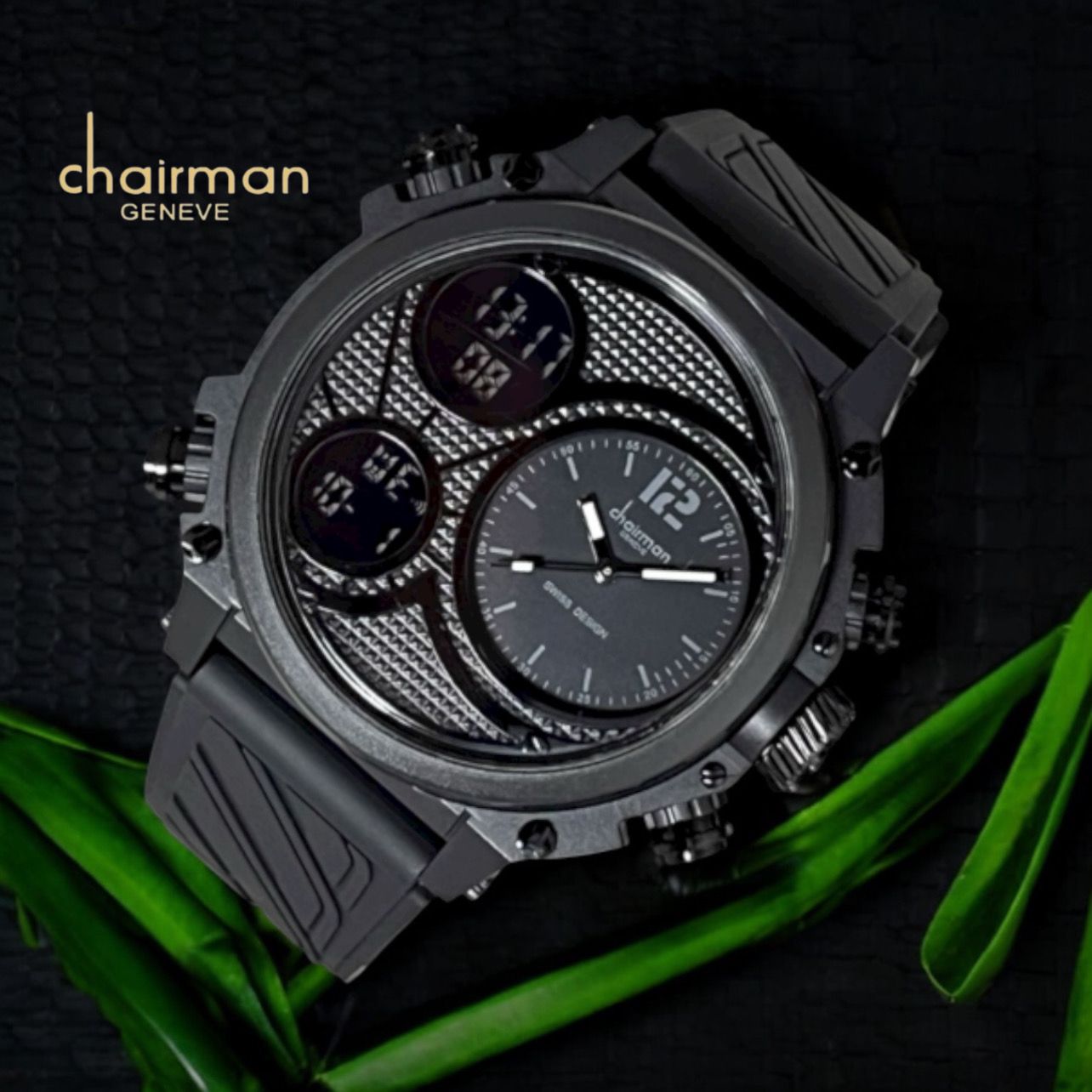 The Sports Model Chairman Geneve features a sleek black dial set within a bold black case, designed specifically for gents who value style and precision. Its sporty yet refined look complements any outfit, making it perfect for both casual and formal occasions. Durable and easy to read, this watch blends functionality with elegance, ensuring you stay on time while making a confident statement.