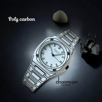 Chairman Geneve White Dated Poly Carbon Unisex Watch