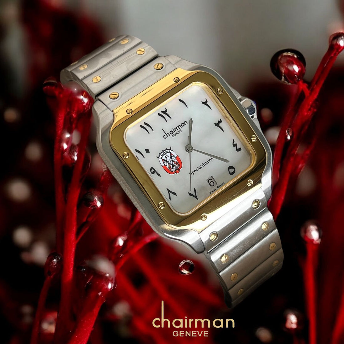 Chairman Geneve ABU DHABI Emblem Dated Arabic White Dial Silver Chain Gents Watch