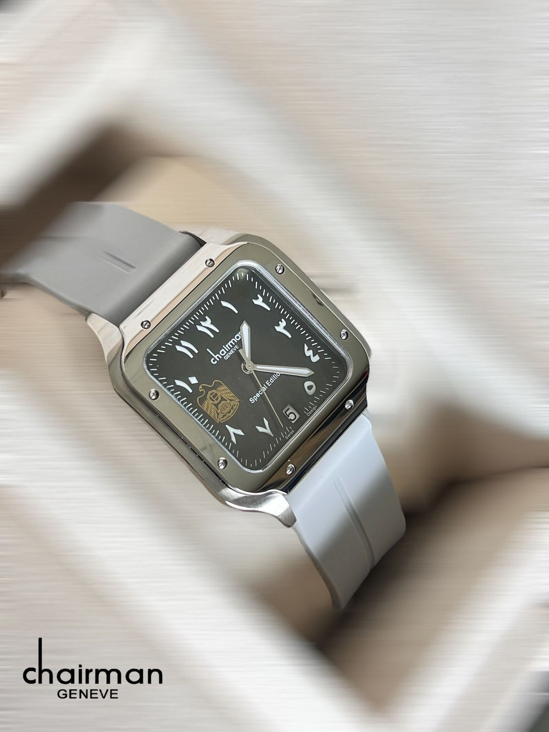 Chairman Geneve Arabic Dated UAE Emblem Black Dial Baby Grey Strap Gents Watch