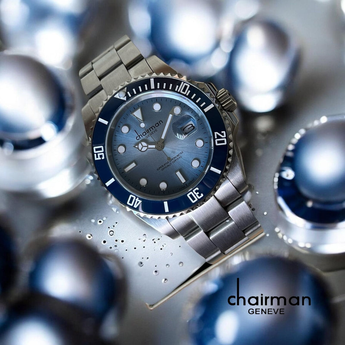 Chairman Geneve Superlative Chronometer Dated Black Dial Silver Chain Gents Watch
