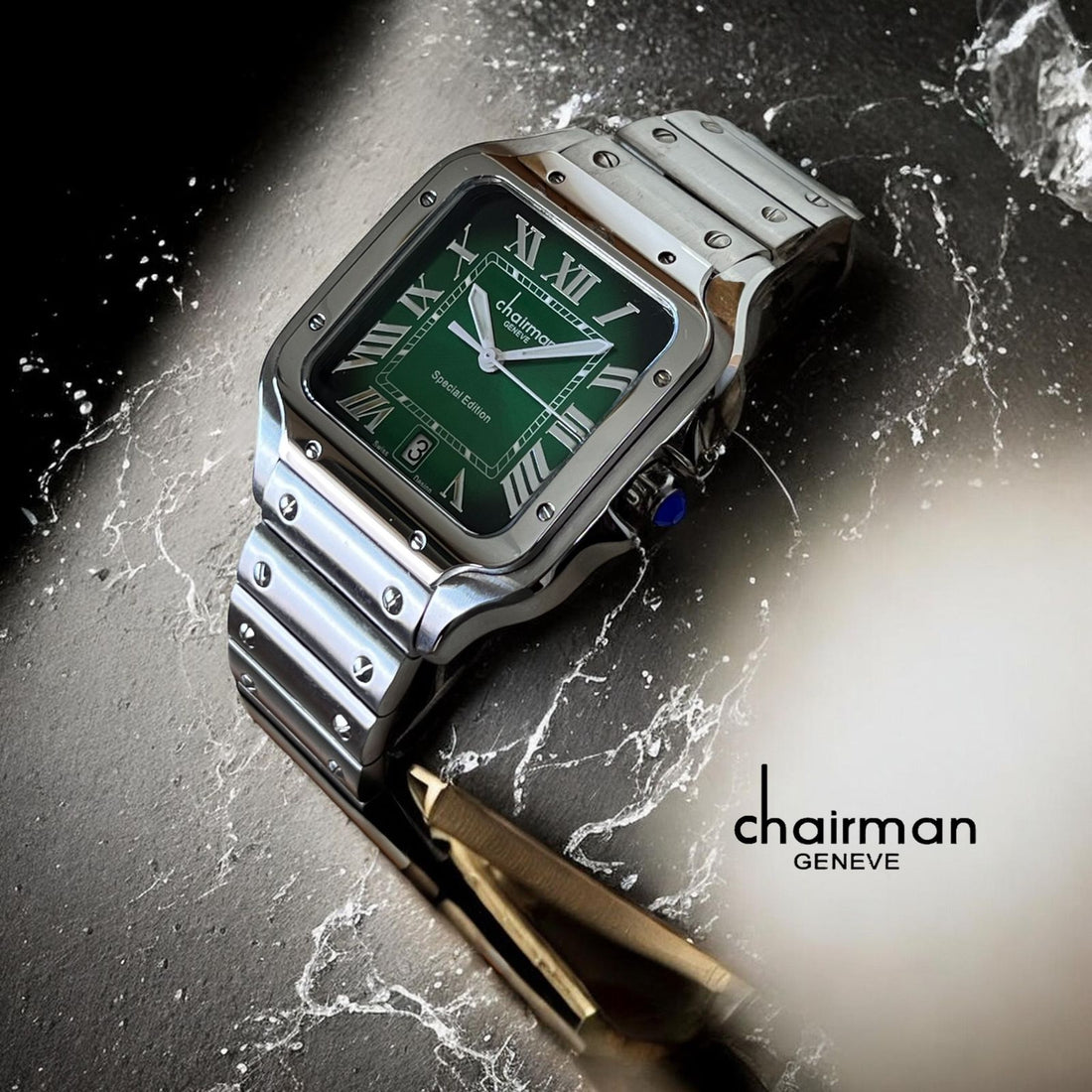 Chairman Geneve Dated Green Roman Dial Silver Chain Gents Watch