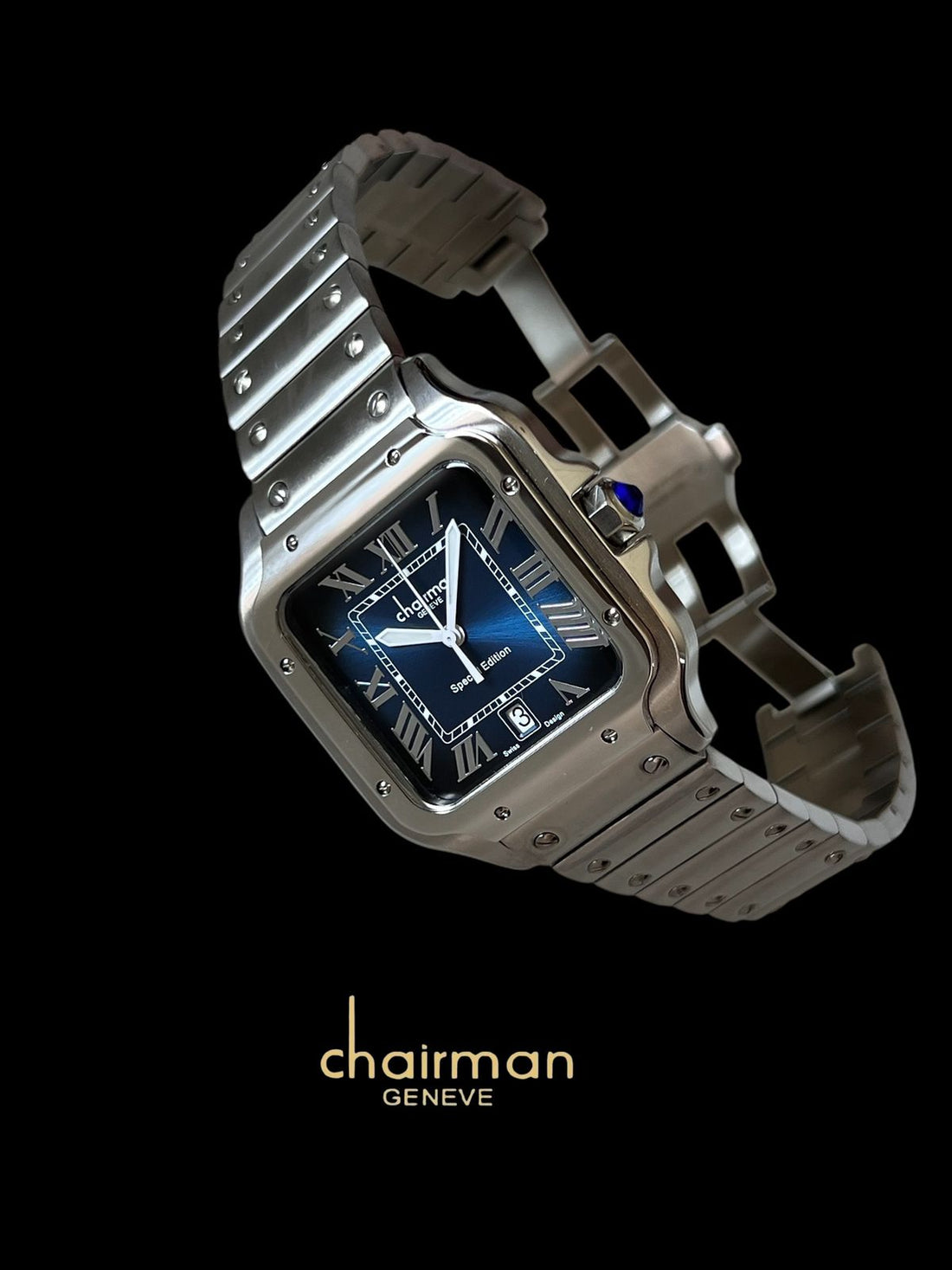 Chairman Geneve Dated Roman Blue Dial Silver Chain Gents Watch