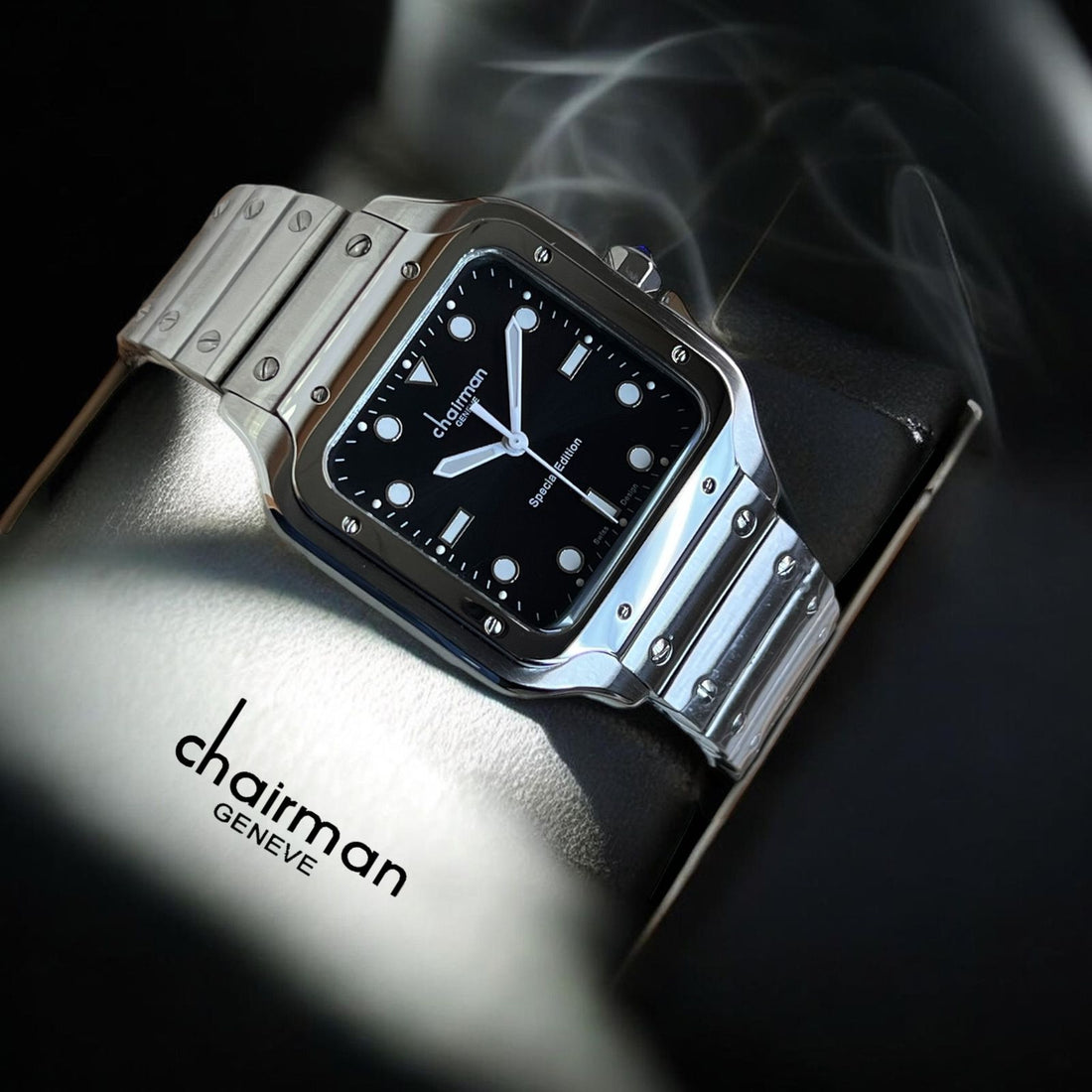 Chairman Geneve Special Edition Black Dial Silver Chain Gents Watch