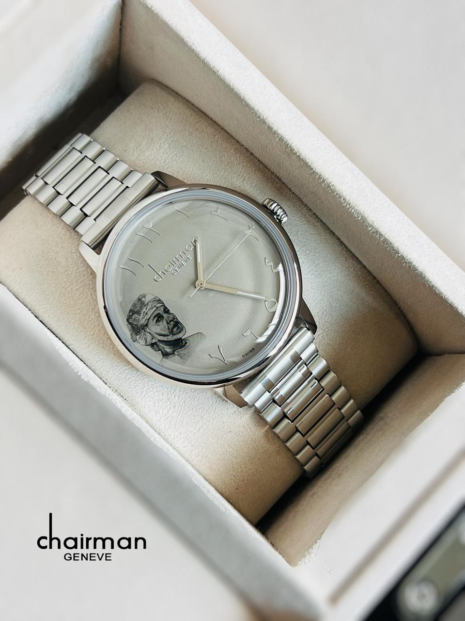 Chairman Geneve UAE Sheik Arabic Baby Grey Dial Silver Chain Gents Watch