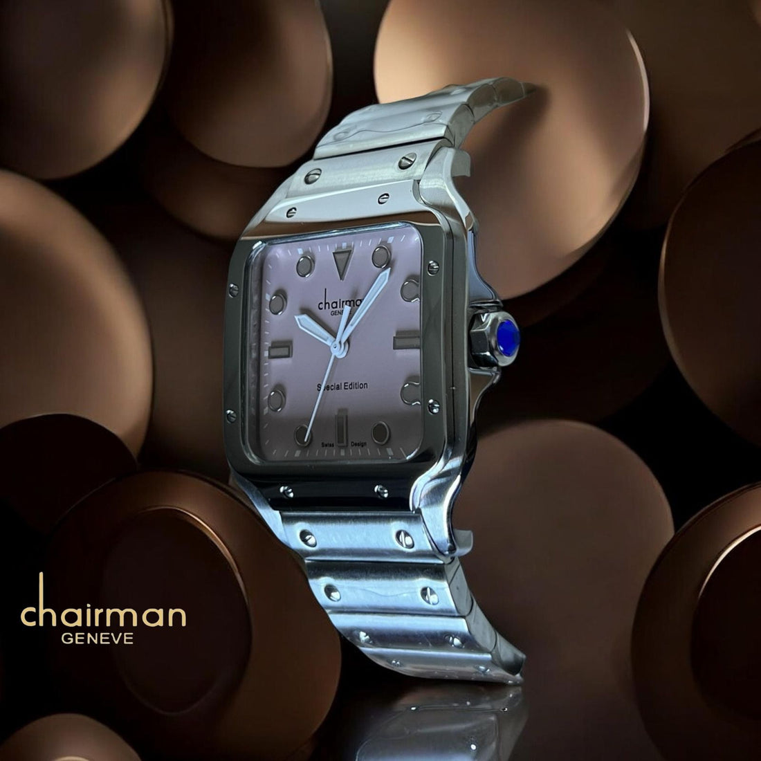 Special Edition Chairman Geneve Baby Pink Dial Silver Chain Gents Watch