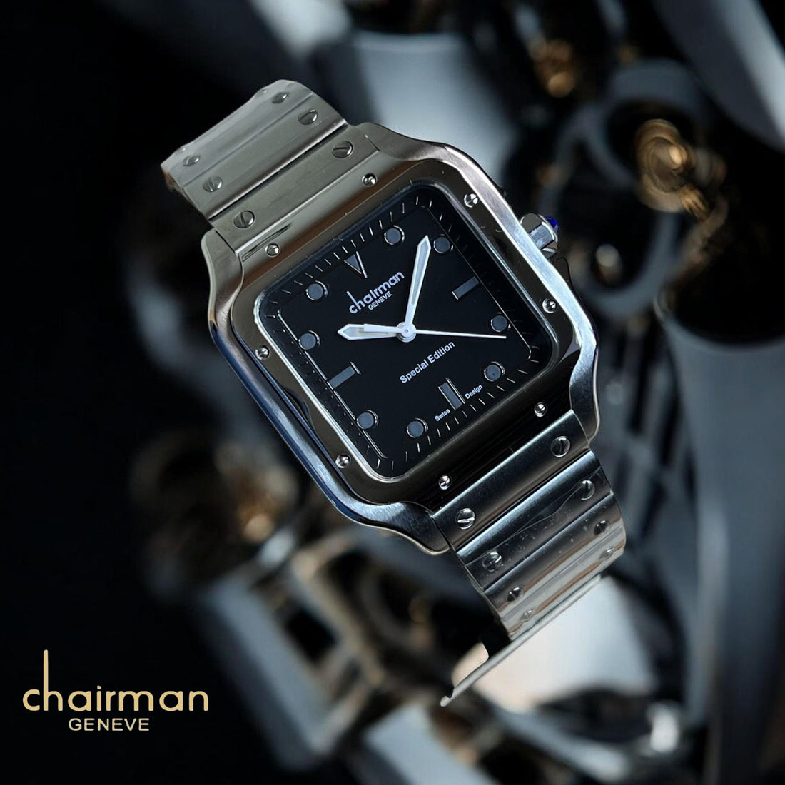Special Edition Chairman Geneve Black Dial Silver Chain Gents Watch