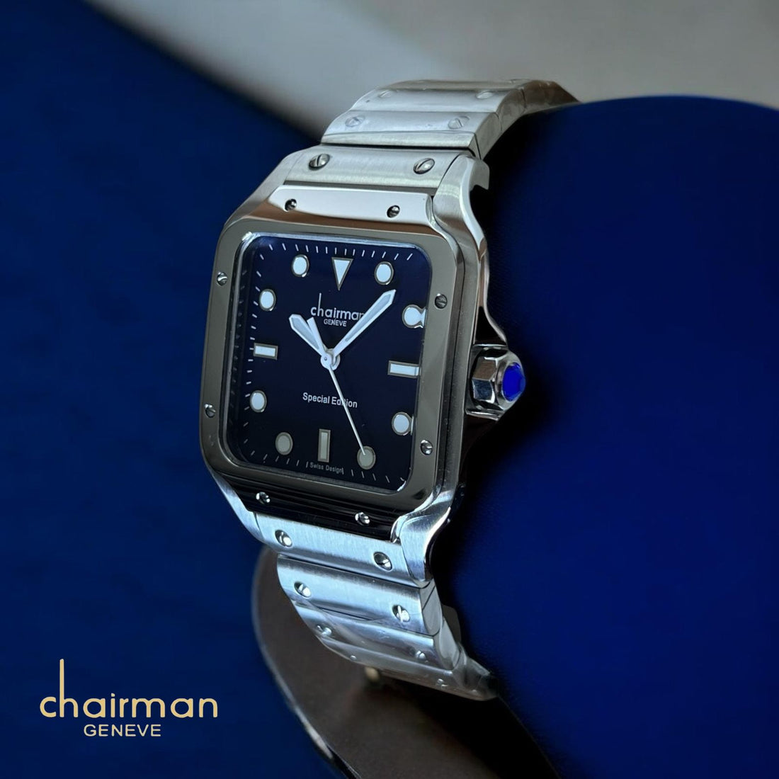 Special Edition Chairman Geneve Blue Dial Silver Chain Gents Watch