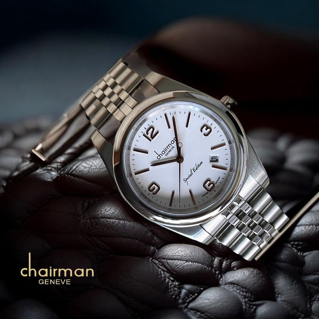 Special Edition Chairman Geneve Dated White Dial Silver Chain Gents Watch