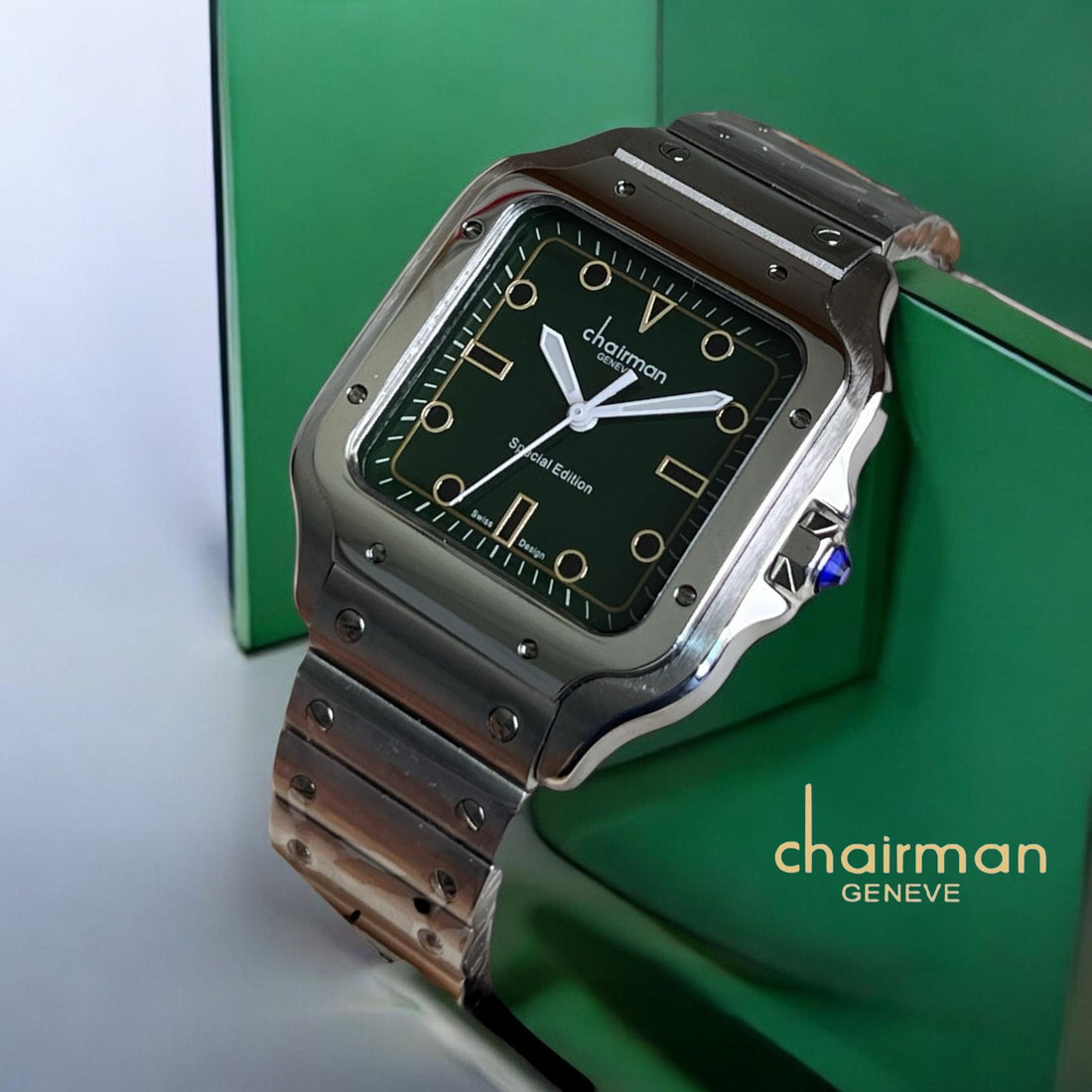 Special Edition Chairman Geneve Green Dial Silver Chain Gents Watch