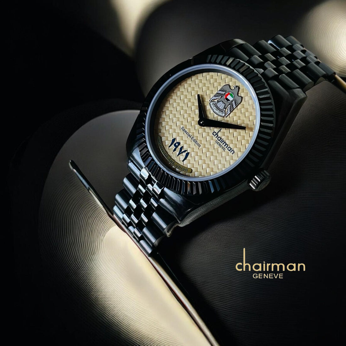 Special Edition Chairman Geneve UAE Emblem Black Dial Black Chain Gents Watch