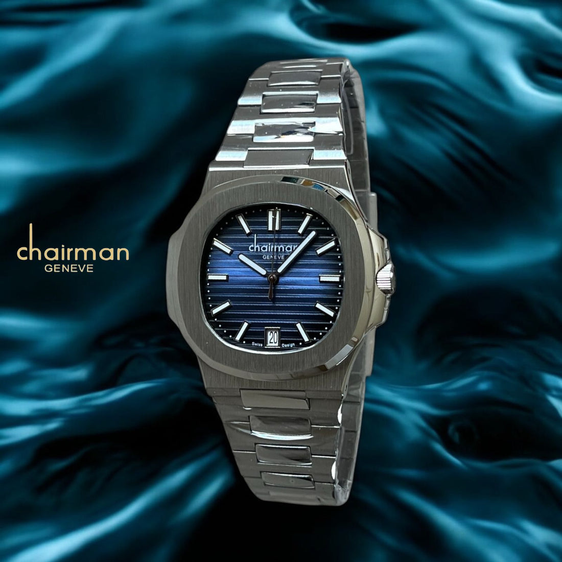 This Chairman Geneve watch features a striking blue dial and matching strap, adding a touch...