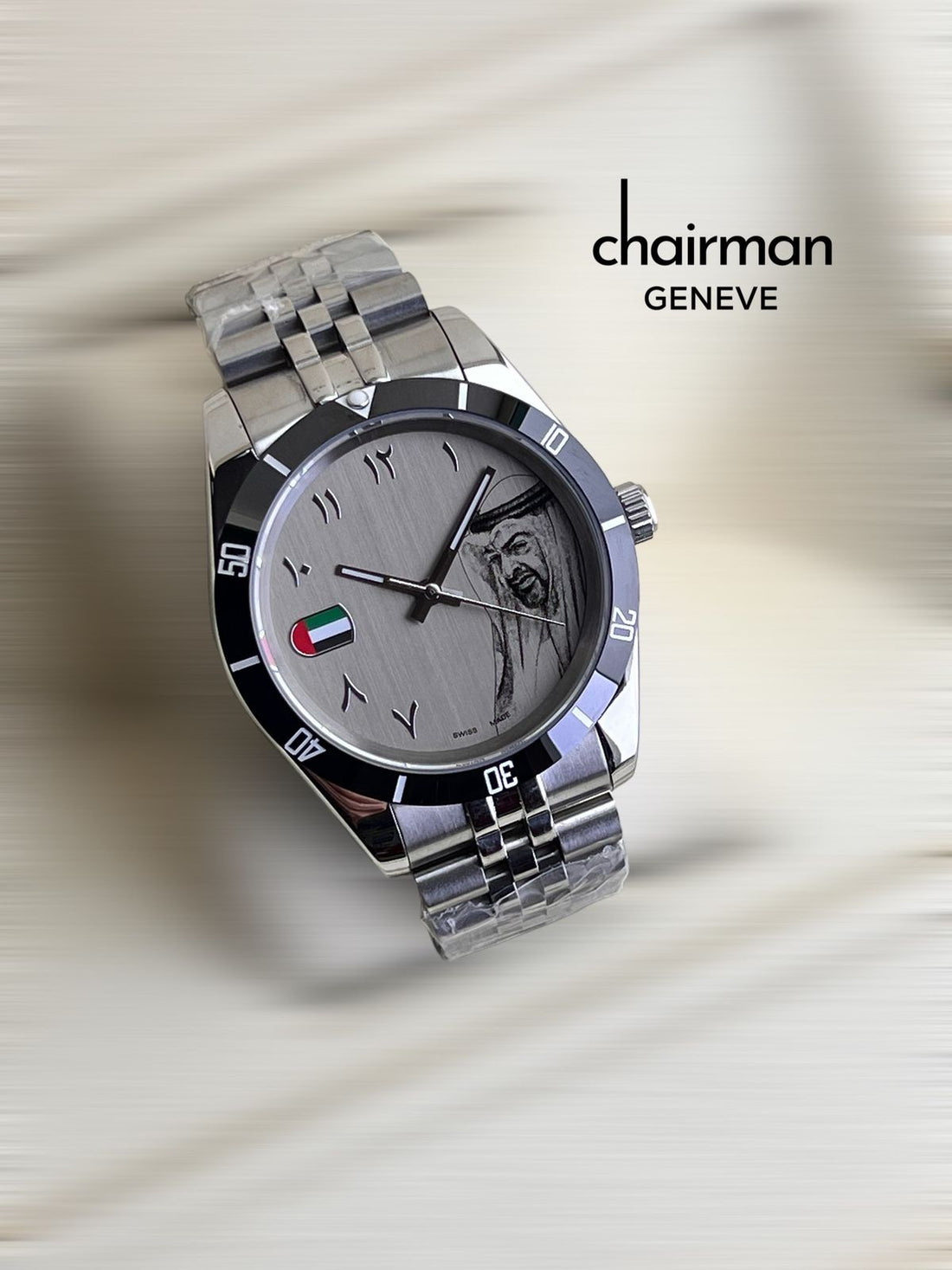 Chairman Geneve Swiss Made Arabic Dial UAE Flag Silver Strap