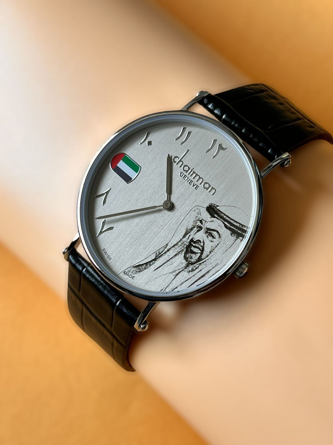 Chairman UAE Flag Dial Black Strap With Arabic Number Men's Watch 1 Year WarrantySwiss MadeStylish...