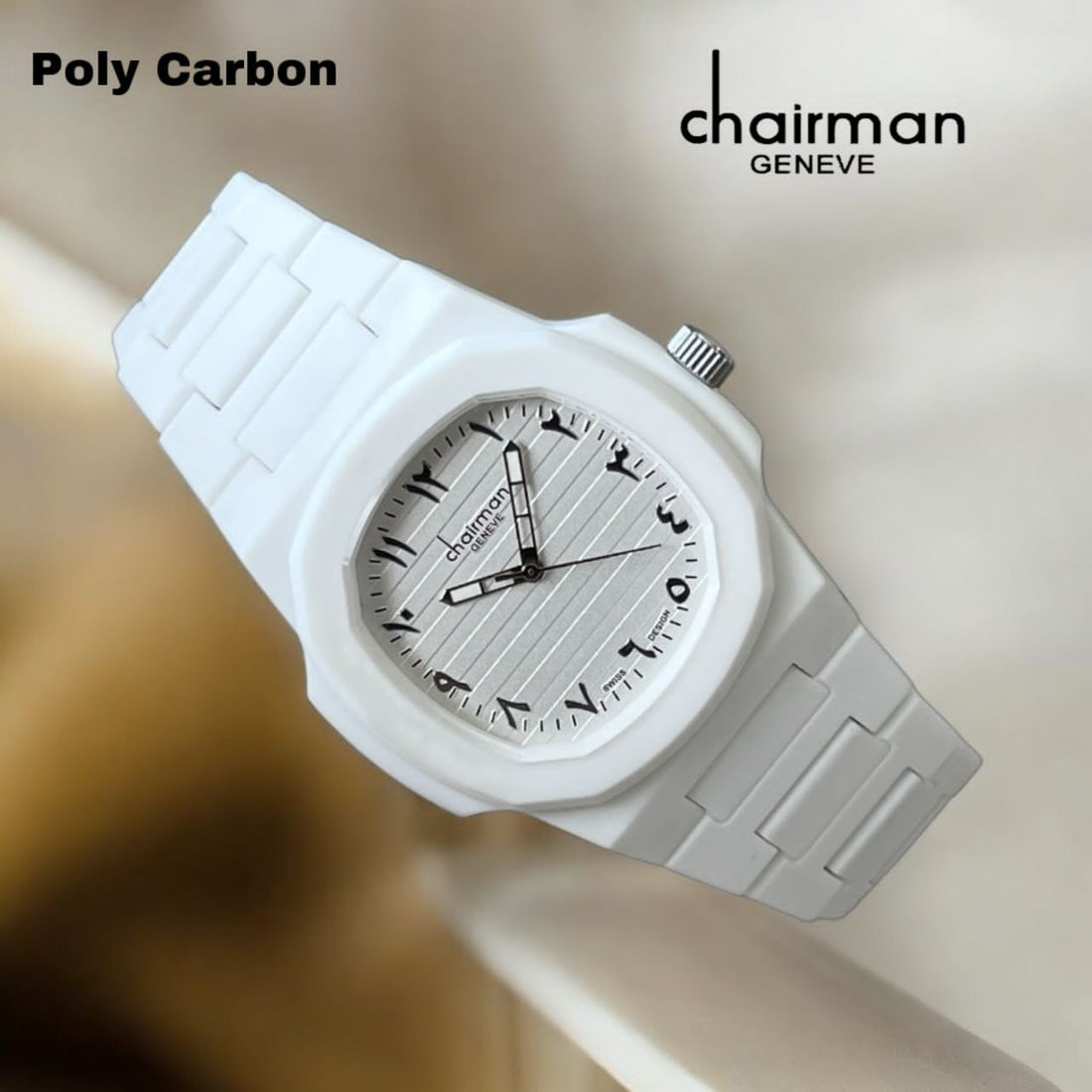 Elevate your style with the Chairman Geneve White Dated Poly Carbon Unisex Watch. This sleek...