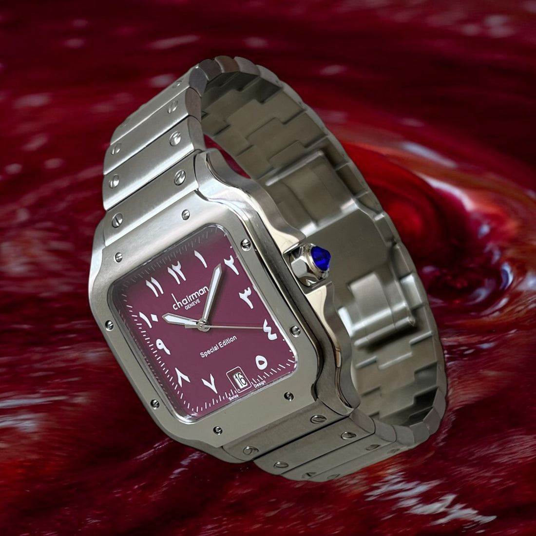 Chairman Geneve Dated Arabic Maroon Dial Silver Chain Gents Watch
