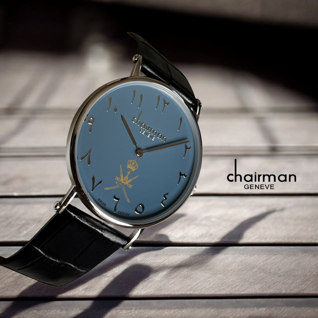 Elevate your style with the Chairman Geneve OMAN Emblem watch, featuring a striking blue dial...