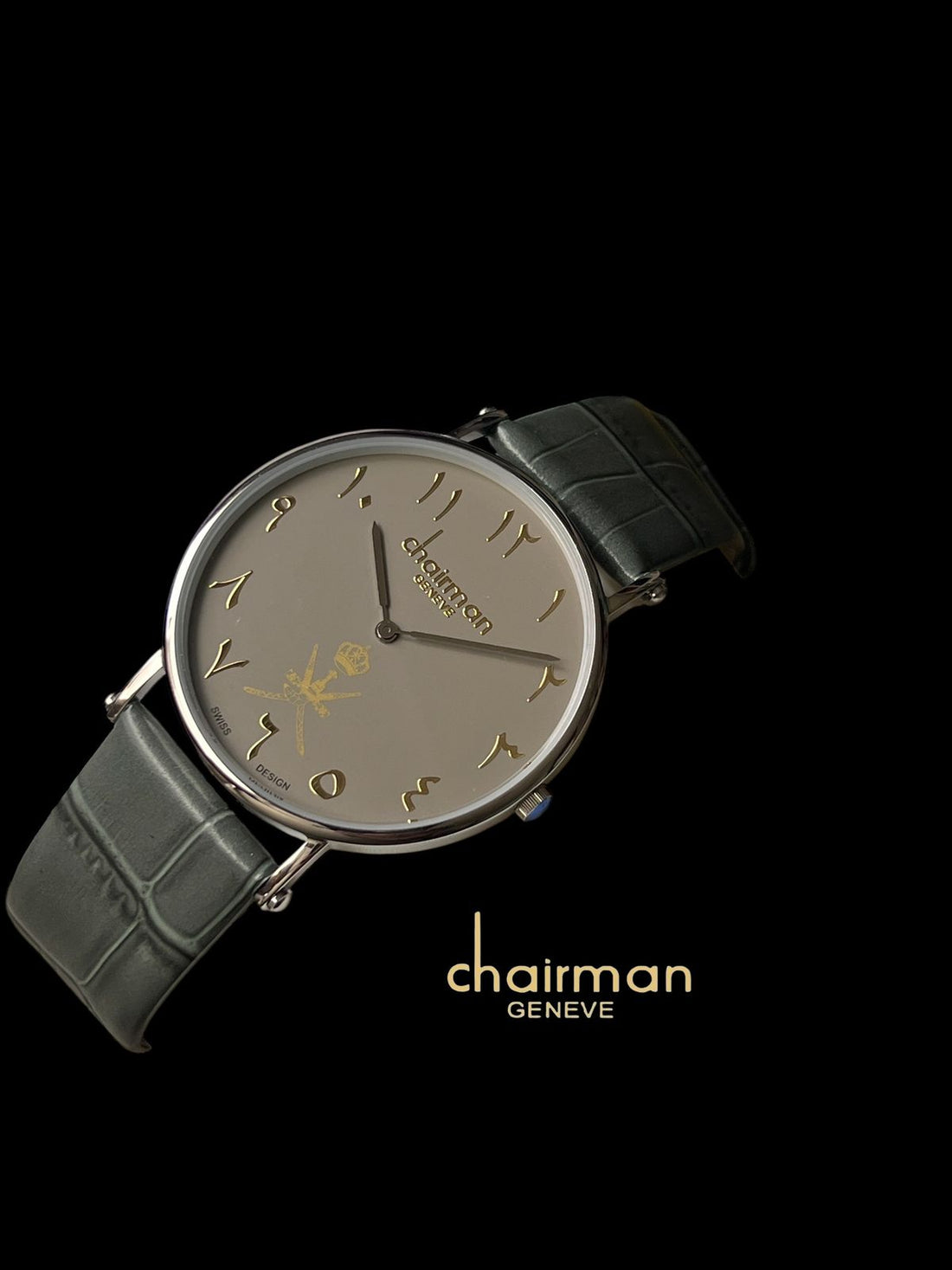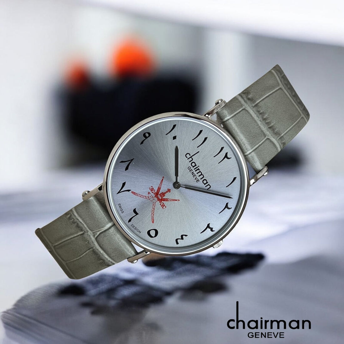 Chairman Geneve OMAN Emblem Arabic Grey Dial Grey Strap Gents Watch
