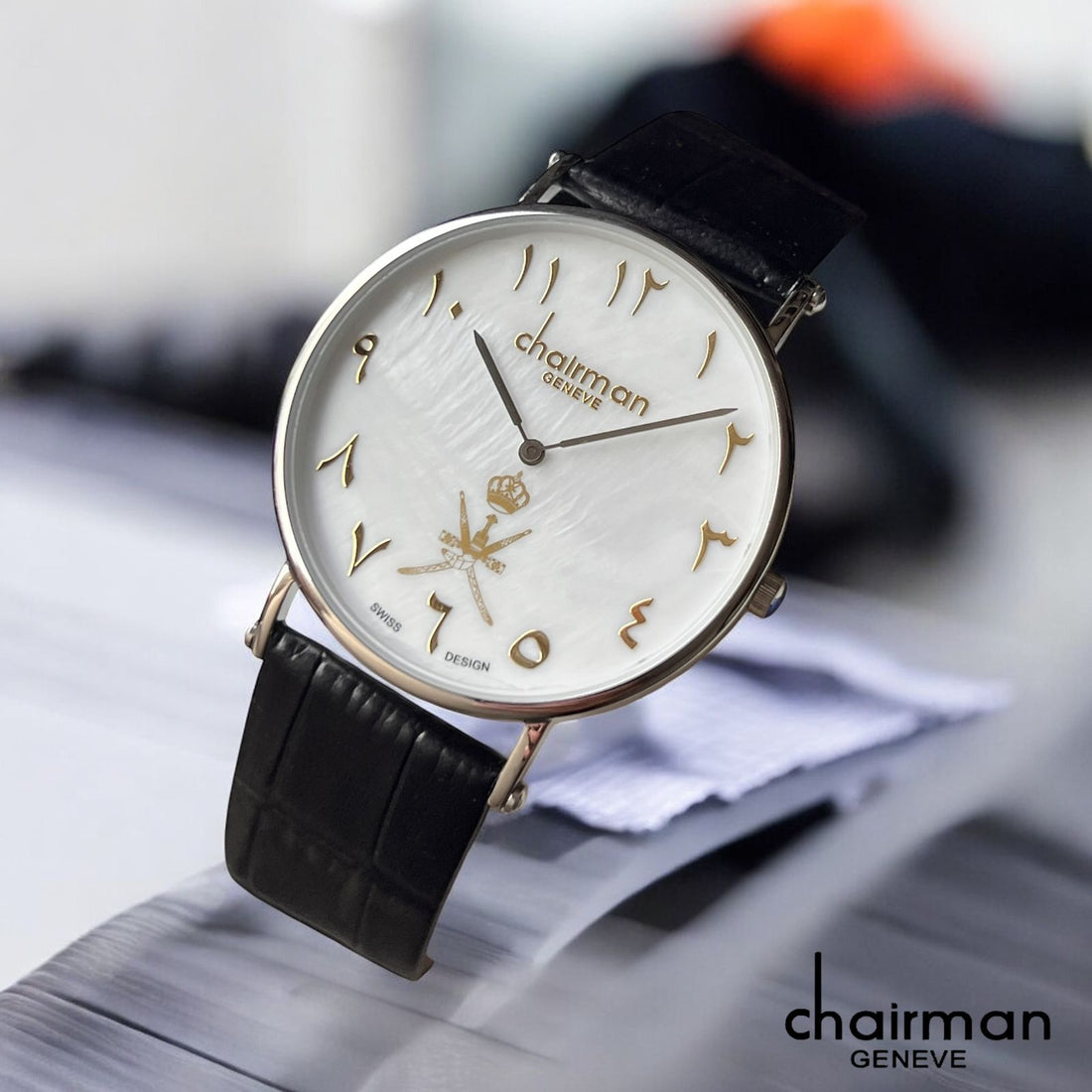 Chairman Geneve OMAN Emblem Arabic White Dial Black Strap Gents Watch