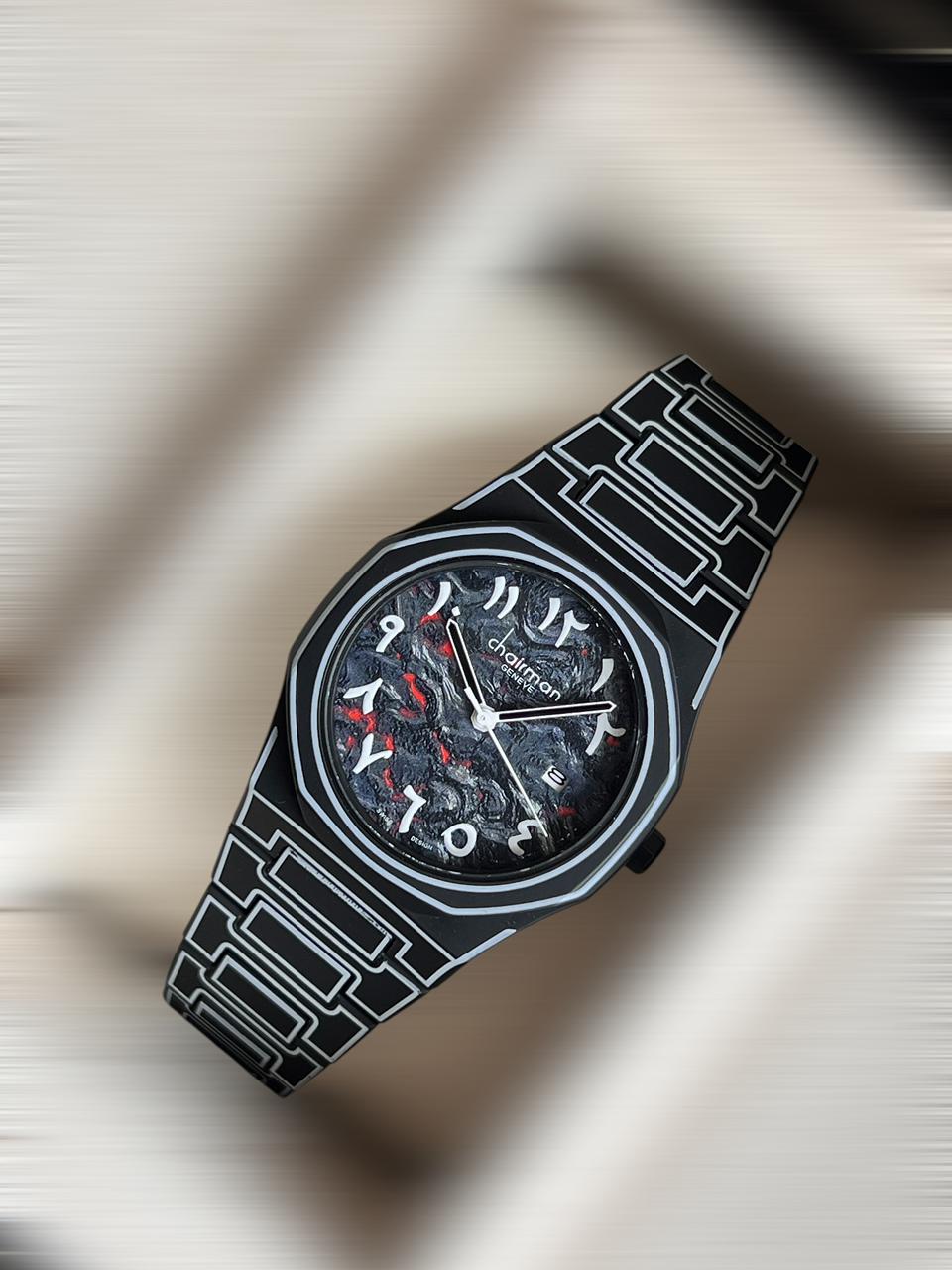 Elevate your style with the Chairman Geneve Arabic Black Marble Dial Black Poly Carbon Gents...