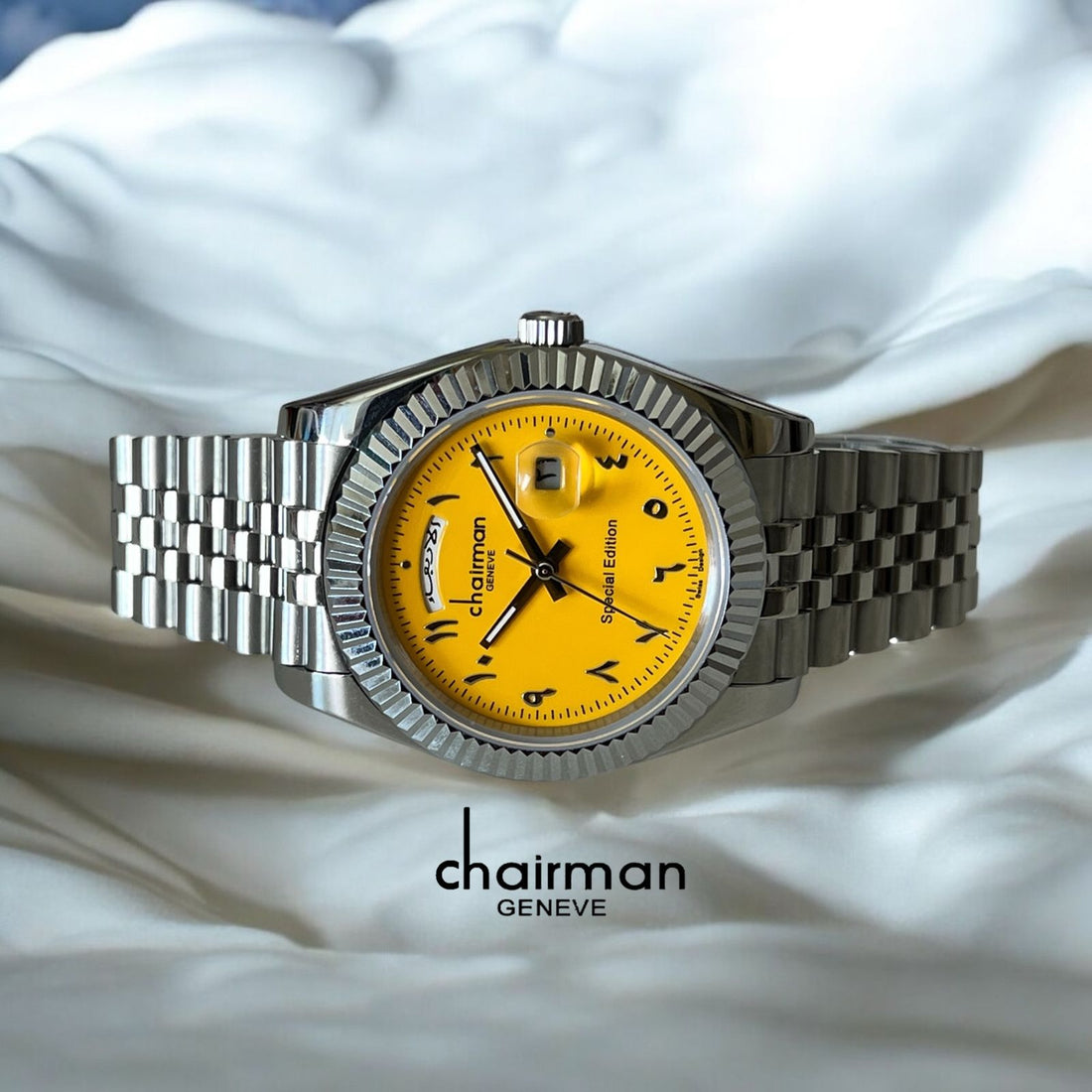 The Special Edition Chairman Geneve watch is crafted with a striking yellow dial and silver...