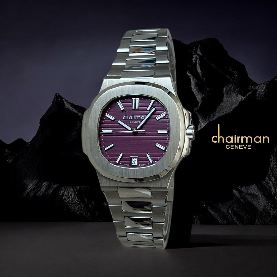 Introducing the Chairman Geneve Purple Dated Dial Silver Chain Gents Watch. Stay punctual and stylish...
