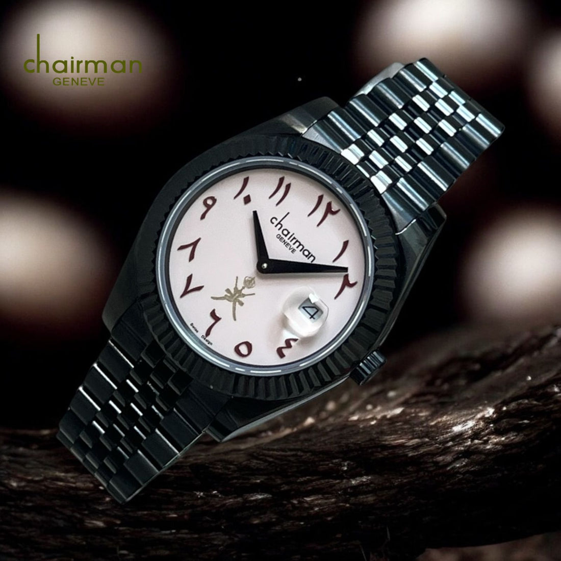 Introducing the Chairman Geneve Arabic Dated Pink Dial Black Chain Gents Watch! Sleek and stylish,...