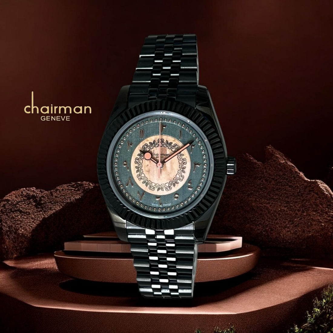 Introducing the Chairman Geneve Arabic Green And Beige Dial Black Chain Gents Watch - crafted...