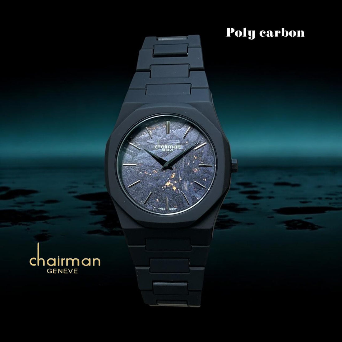Introducing the Chairman Geneve Poly Carbon watch with a sleek white dial and contrasting black...