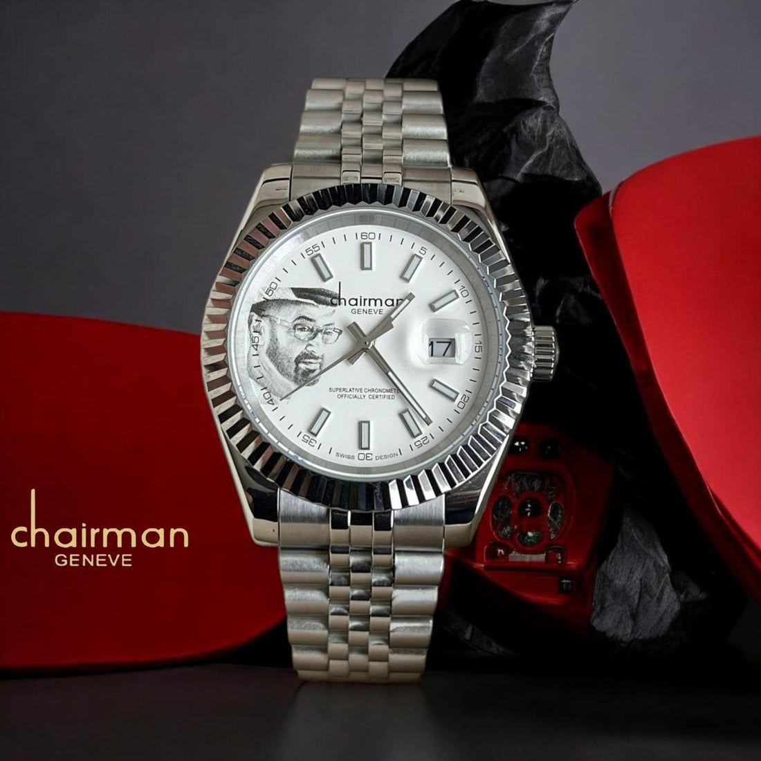 Experience timeless elegance with the Chairman Geneve UAE Sheik watch. Featuring a clean white dial...