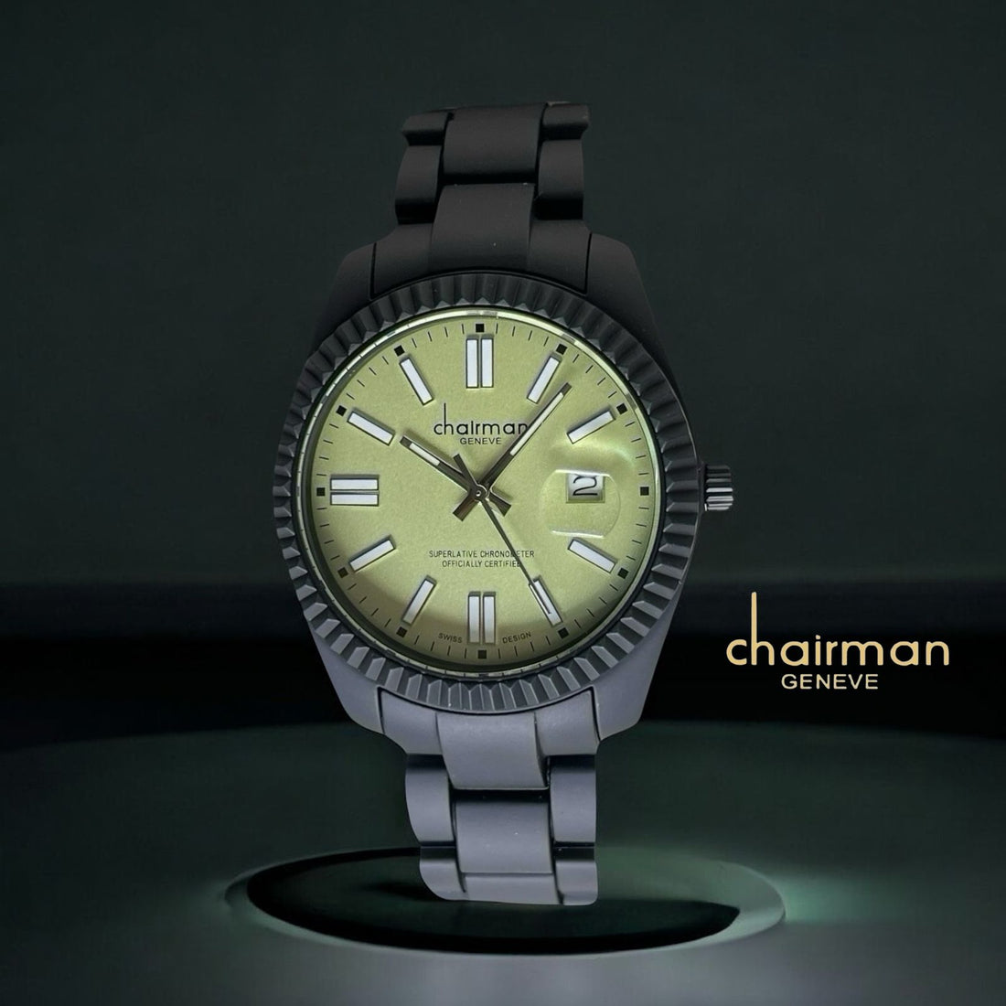 Superlative Chronometer Chairman Geneve Dated Green Dial Black Chain Gents Watch