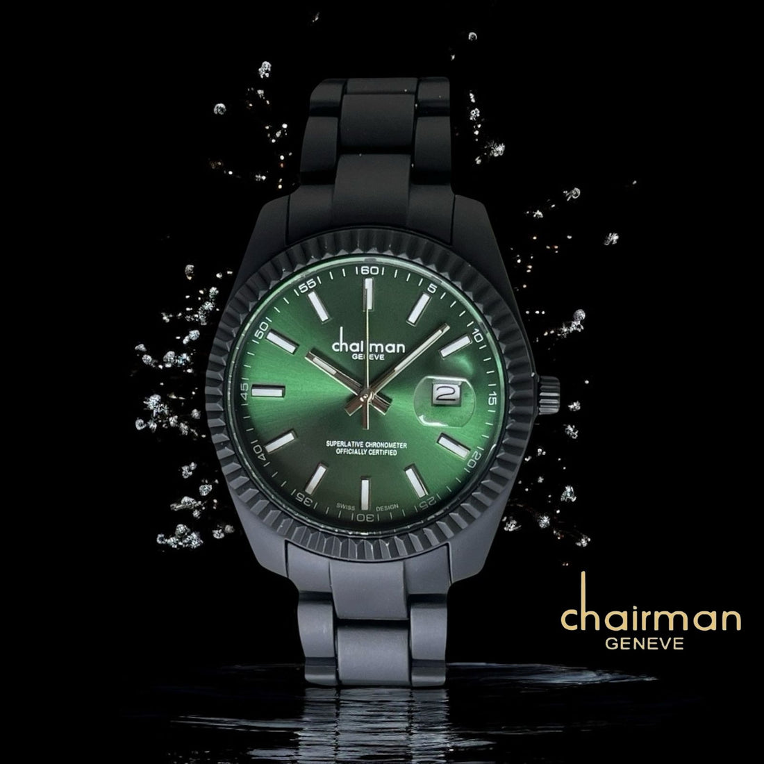 Elevate your style with the Superlative Chronometer Chairman Geneve, featuring a striking green dial paired...