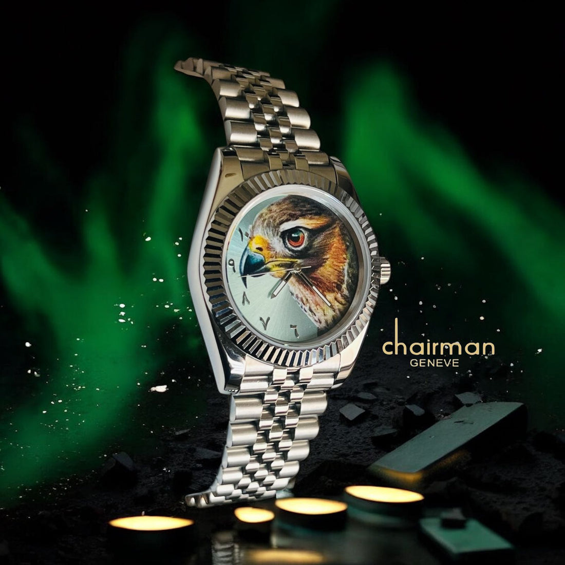 Elevate your wrist with the Chairman Geneve Arabic Eagle Photo watch, a sophisticated timepiece designed...