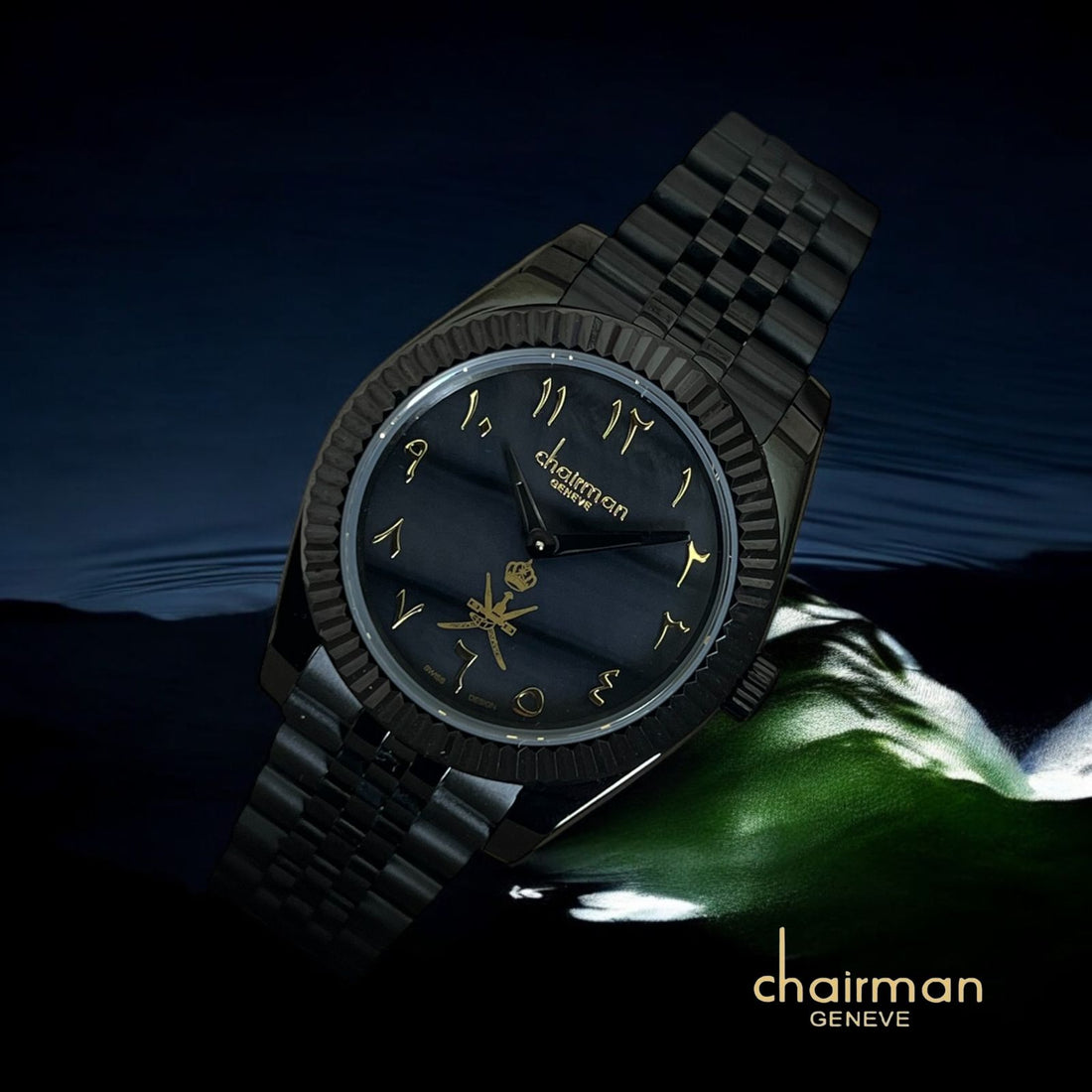 Chairman Geneve Arabic Black Dial Black Chain Gents Watch