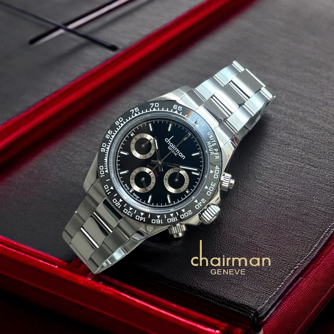 Chairman Geneve Black Dial Steel Strap Men's Watch