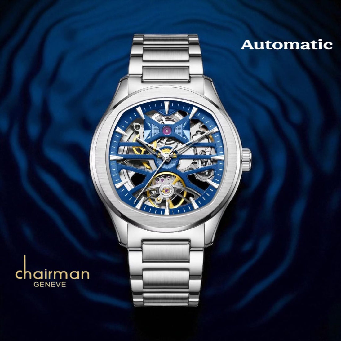 Experience timeless elegance with the Chairman Geneve Automatic Mechanical Watch. Featuring a striking blue dial...