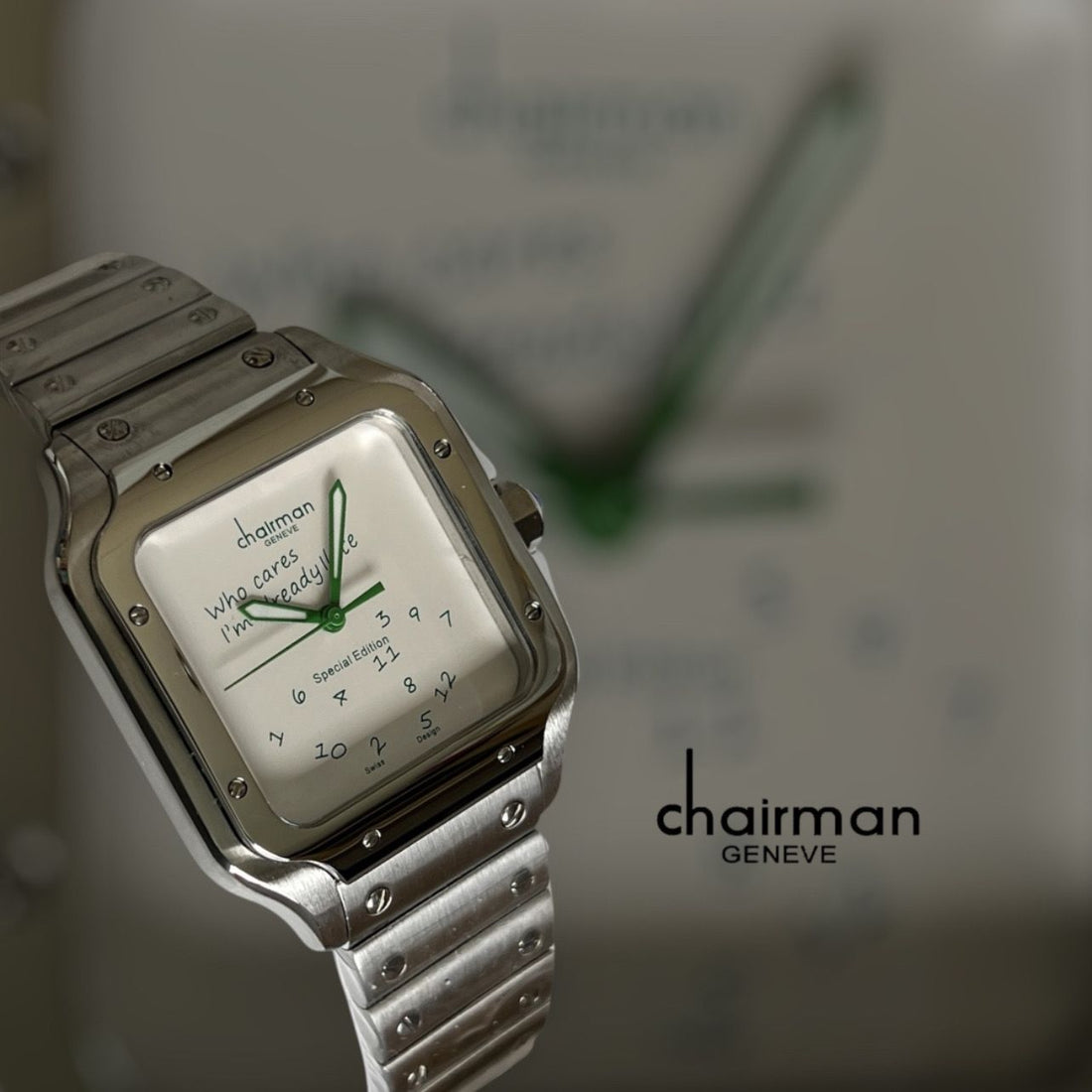 Special Edition Chairman Geneve White Dial Green Letters Silver Chain Gents Watch