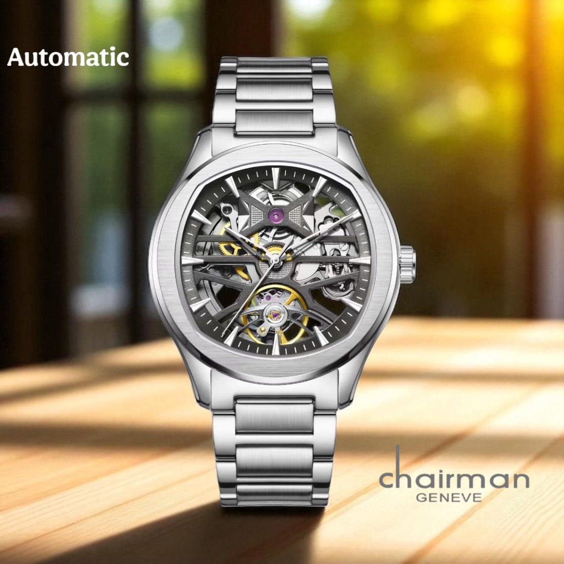 Experience timeless elegance with the Chairman Geneve Automatic Mechanical Watch. Featuring a sleek black dial...