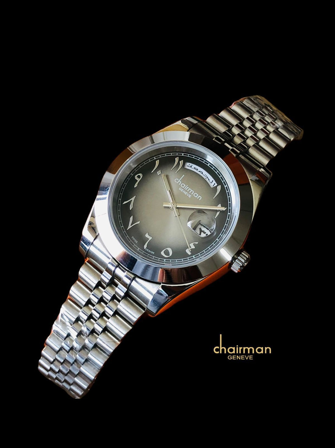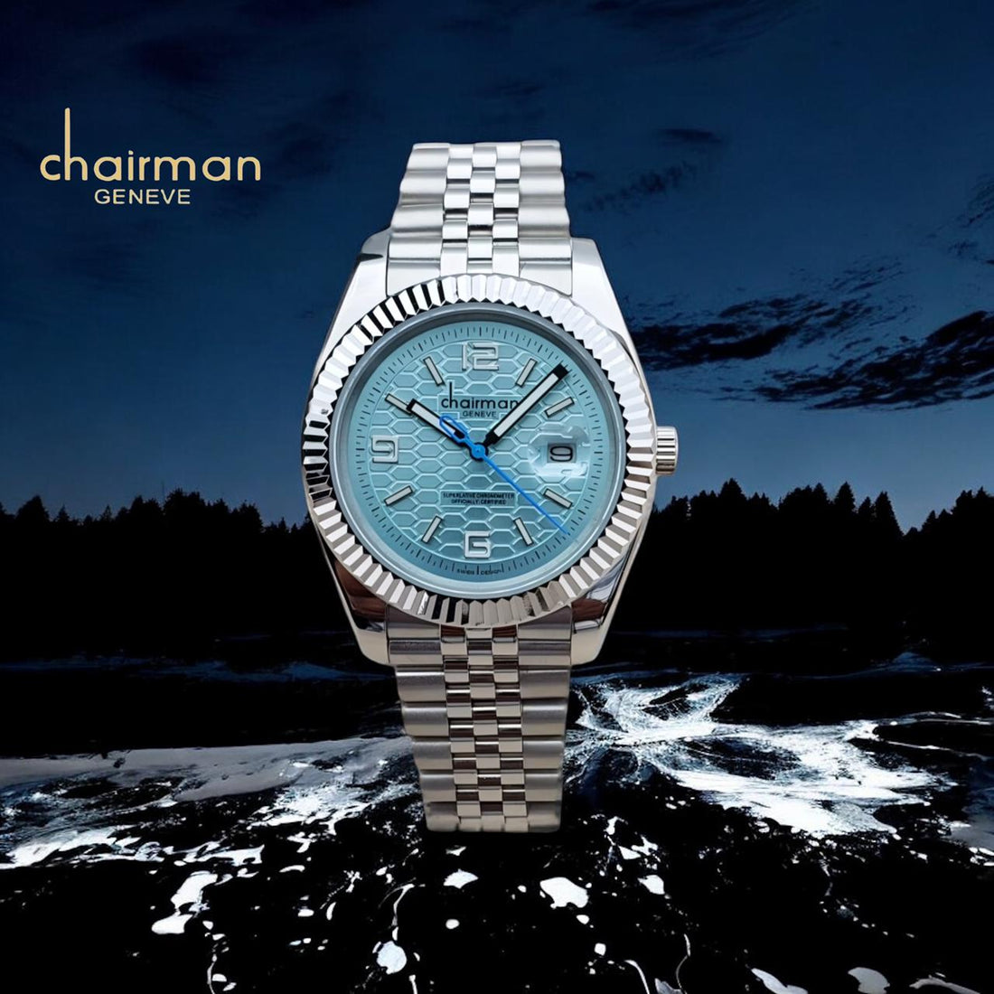 Elevate your style with the Special Edition Chairman Geneve Blue Arabic Day and Dated Silver...