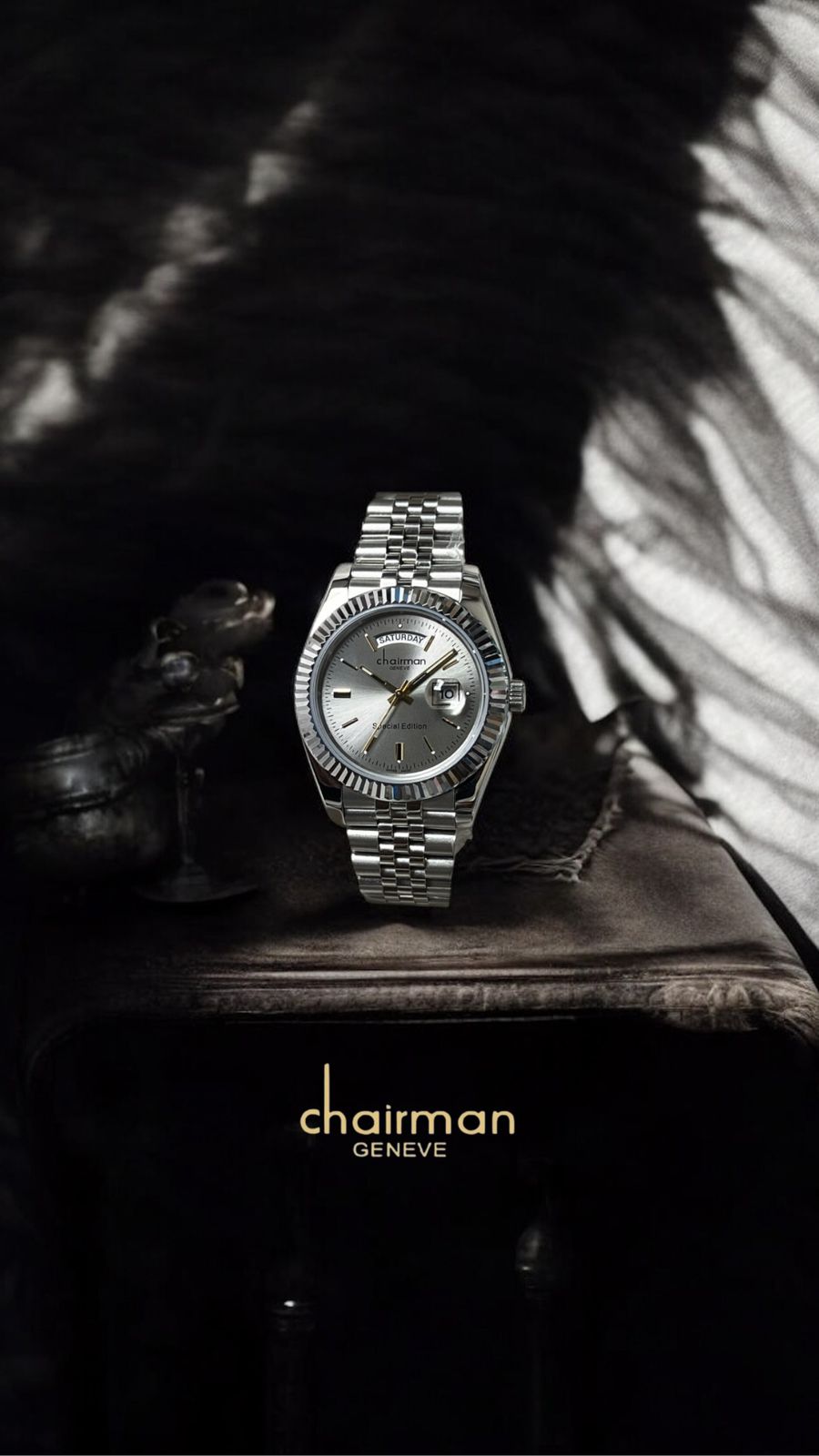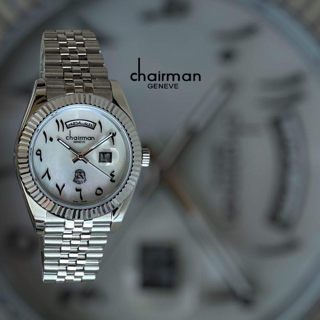 Special Edition Day And Dated Grey Dial Silver Chain Chairman Geneve Gents Watch