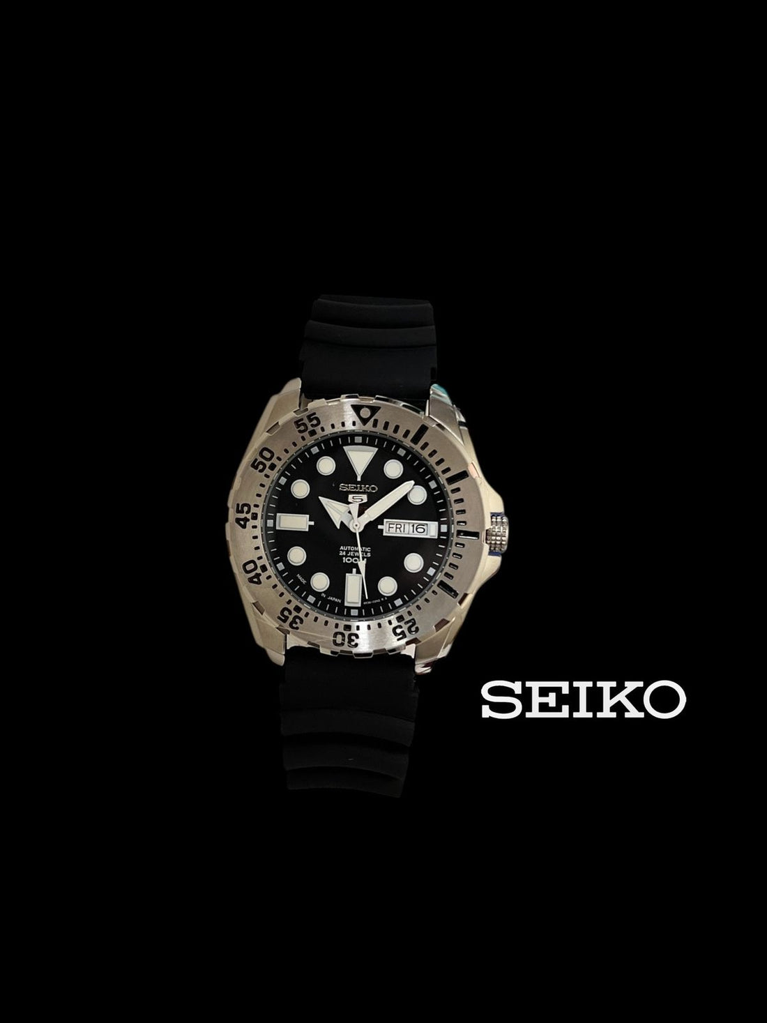 Seiko Automatic 24 Jewels Day And Dated Black Dial Black Strap Gents Watch