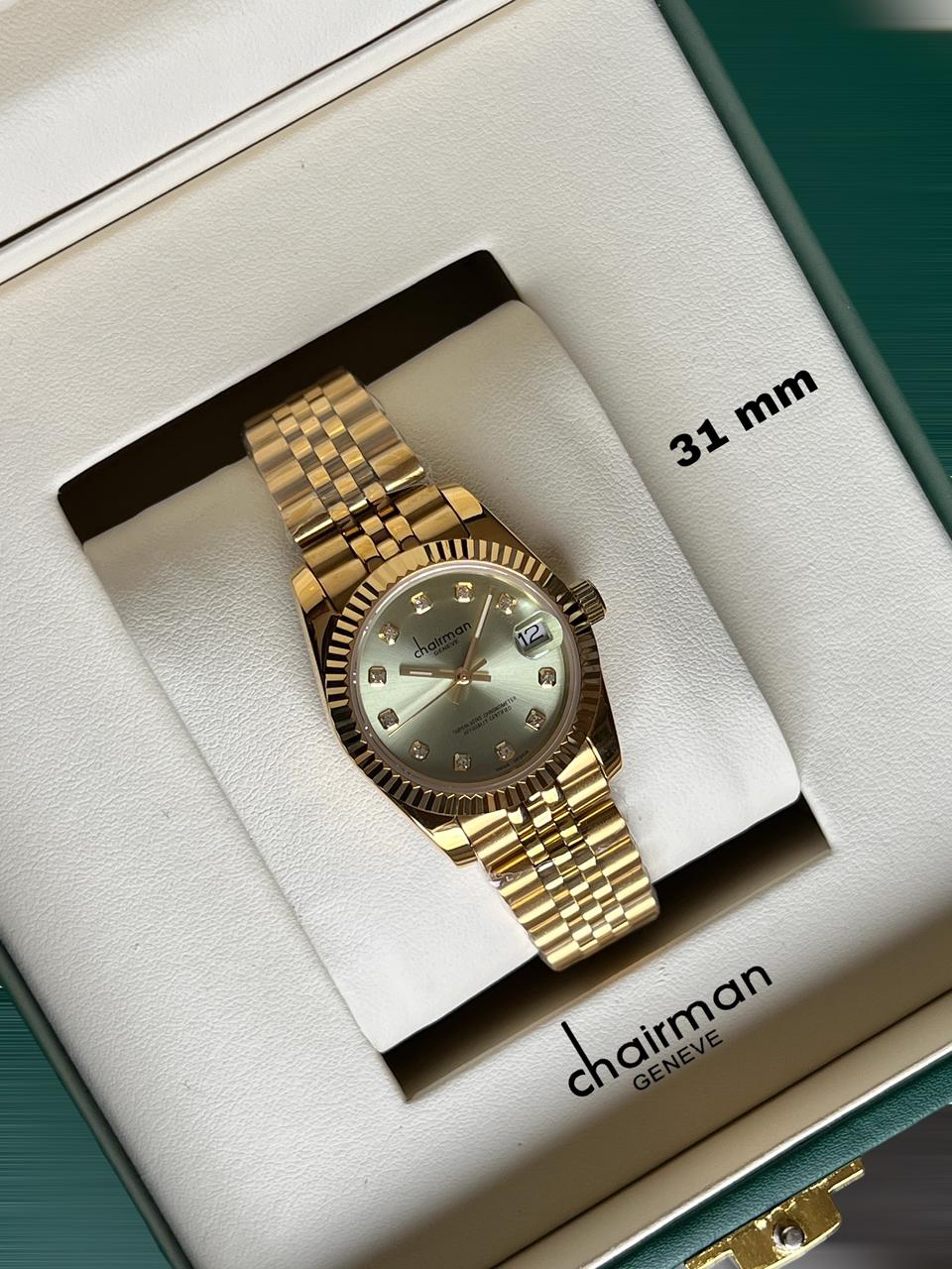Chairman Geneve Baby Green Dated Dial Golden Chain Ladies Watch